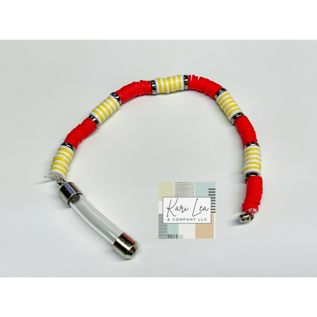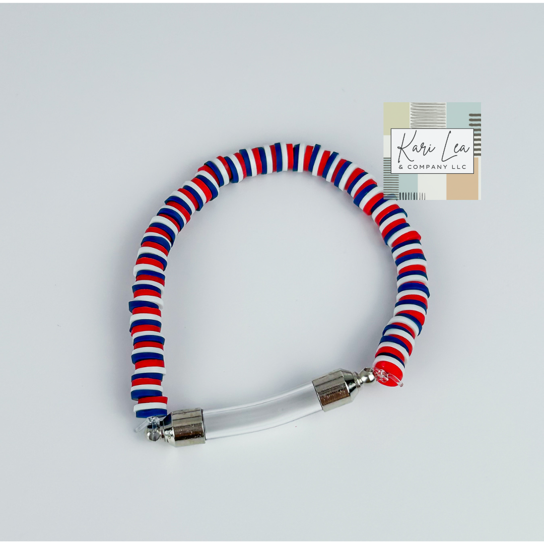 These beautiful, KC Inspired & School Spirit Colored bracelets are more than just stylish accessories — they’re wearable memory keepers. Each bracelet features a fillable glass tube designed to hold something precious, personal, and meaningful to you.