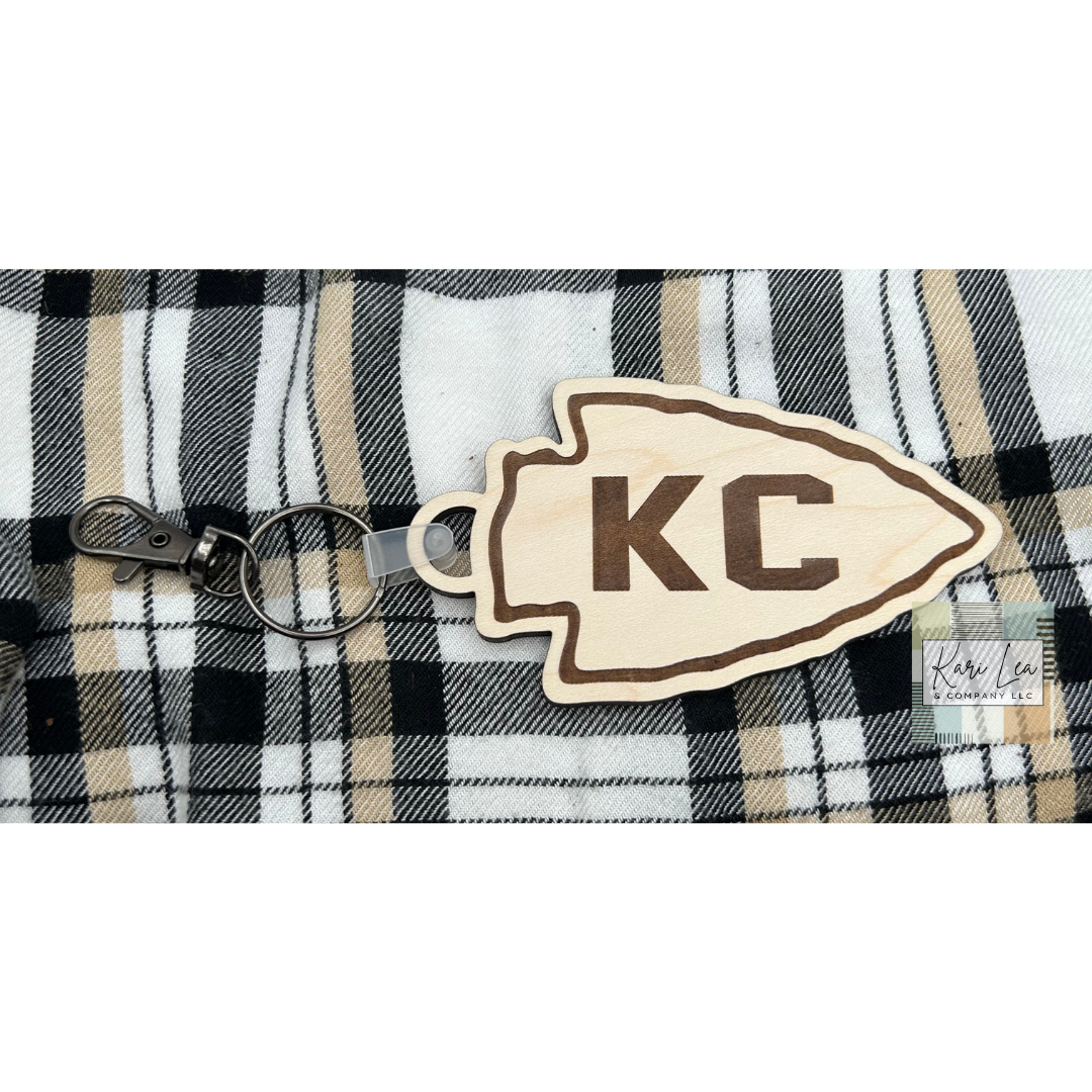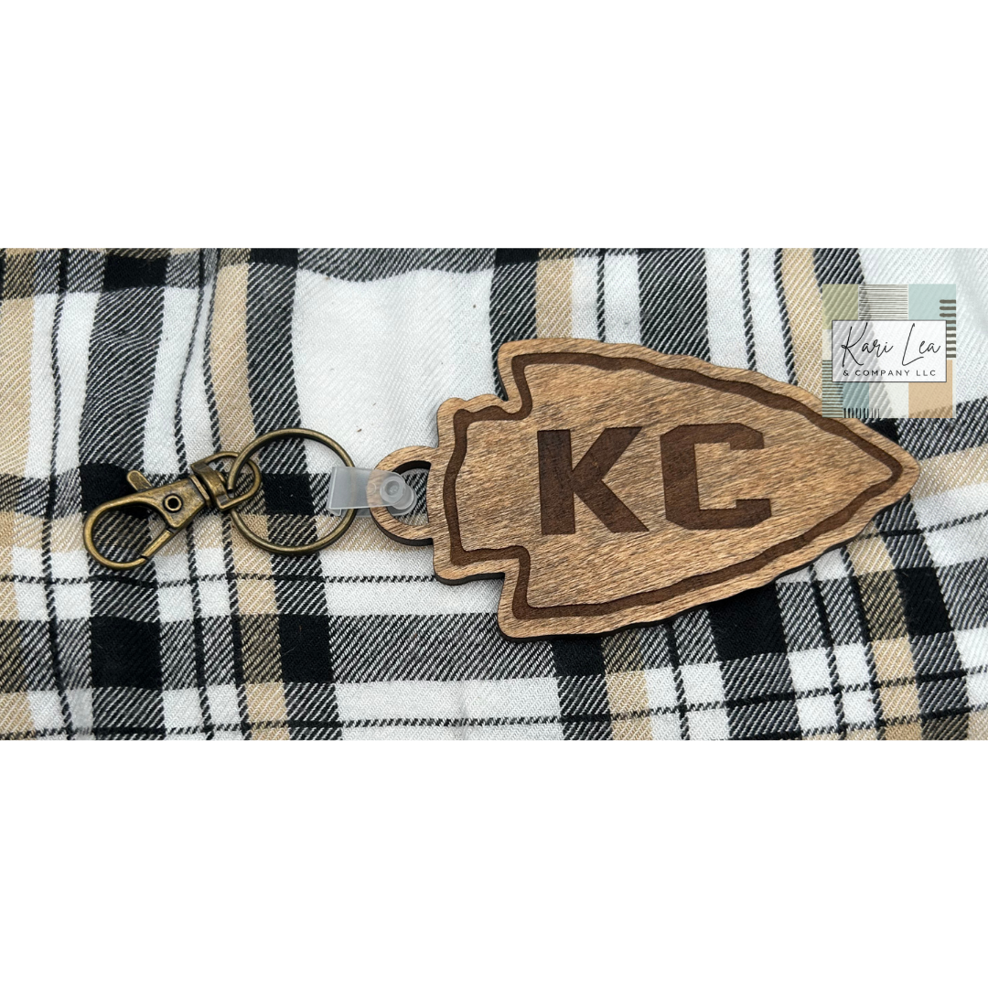 KC Arrowhead Wood Keychain.